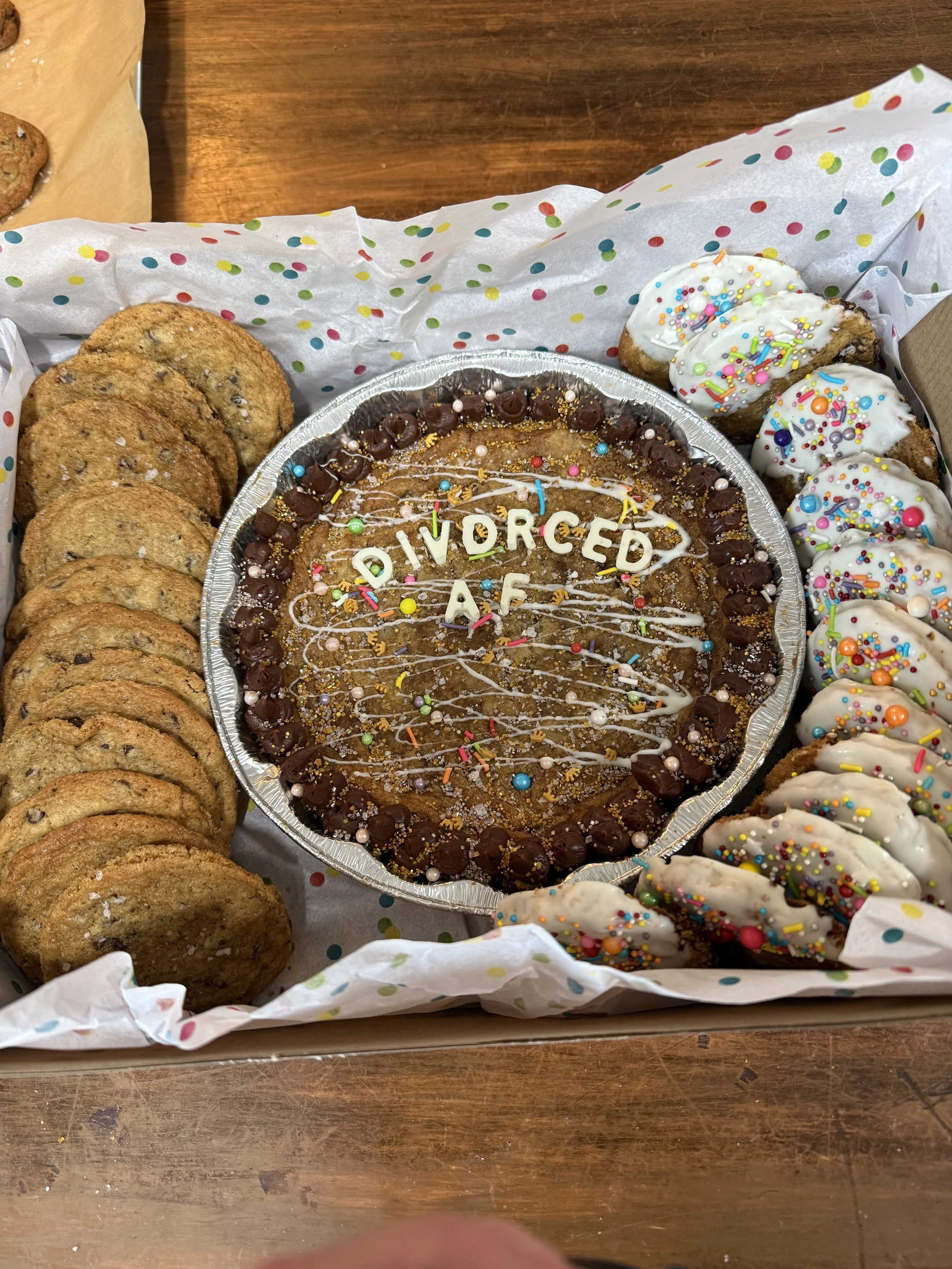 Thanksgiving Cookie Box Seasonal - 1 dozen + $49.00 1 Dozen - Classic Sea Salt Brown Butter Chocolate Chunk $29.00 Cookie Cult Favs Cookie Box (6) $29.00 Personalized Custom Cookies (1/2 dozen) / Cookie Cake $35.00 Cookie Gift card from $25.00 1 DOZEN - Deluxe Bakery Style Cookies - Cult Favs $49.00 1/2 Dozen thin cookies snack pack $16.00 Deluxe Brown Butter Sea Salt Chocolate Chunk Cookie $5.00 Blueberry Pie $5.00 1 Dozen Minis - Cookie Bag $10.00 Brown Butter Bites ( 2 Dozen ) $15.00 2 Dozen - Classic Sea Salt Brown Butter Chocolate Chunk $49.00 2 dozen - Deluxe Bakery Style Cookies - Cult Favs $120.00 50 Cult Favorite Cookies $120.00 100 Cult Favorite Classics $225.00 PopTart Cookies $6.00 Brookie Platter $14.00 Lil Debbie $6.00 SMORES $5.00 Birthday Cookie $9.00 Cinnamon Toast Crunch Snickerdoodle $5.00 Chocolate Peanut Butter Potato Chip $5.00 Funfetti Lucky Charms $5.00 Cinnamon Roll $5.00 Pantry Crack $5.00 Space Oreos $6.00 Fruity Pebbles Funfetti Sandwhich $6.00 Cookie Wedding Cake $75.00 GF Chocolate Chunk Sea Salt Cookie $6.00 Wedding Cookie Table $700.00 Space Brownie $5.00 M&M Nutella $6.00 Special Occasion Cookie Box $9.00 Baby Gender Reveal $35.00 Seasonal Chocolate Decoration on our classic Chocolate Chunk Cookie $5.00